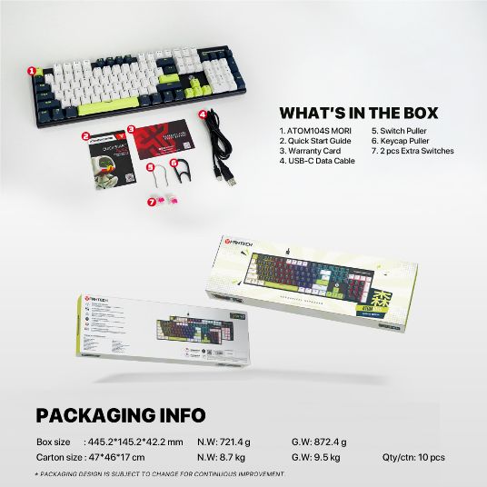 Tastatura Mehanicka Gaming Fantech MK878S RGB Atom 104S Mori plava (taro switch)